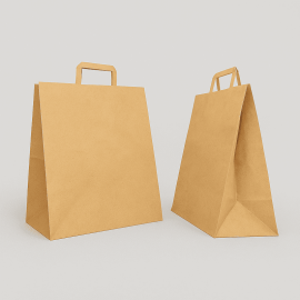 Die Box-Papiertüte ist eine ökologische und praktische Lösung, hergestellt aus 90 g/m² Kraftpapier mit flachen Henkeln, erhältlich in Weiß oder Naturkraft.
