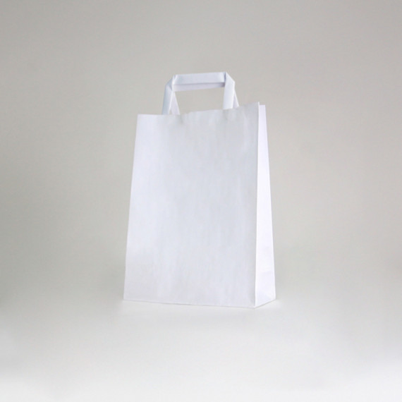 Le sac en papier Box est une solution écologique et pratique, fabriqué en papier kraft 90 g/m² avec des poignées plates, disponible en kraft blanc ou naturel.